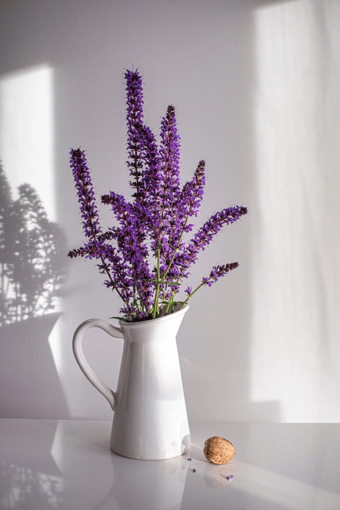 A lavanda é uma plantinha ideal para se ter no quarto. Elas são plantinhas calmantes, tem o poder de tranquilizar e com isso garantir boas noites de sono. Elas também tem funcão de proteção e limpeza.