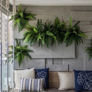 Quando se fala em plantinhas de casa, a samambaia é sempre uma das mais lembradas. Por ser uma planta volumosa, com folhas bem longas e pendentes, é aconselhável que ela seja pendurada ou colocada na parede. Para garantir seu bem estar deixe-a em um espaço com iluminação difusa. O ideal é regá-la diariamente com bem pouca água para manter a umidade da terra constante, mas evitando o encharcamento.