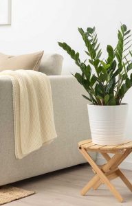 A zamioculca é uma ótima opção de plantinha pra colocar na entrada principal da sua casa, essa espécie dizem atrair prosperidade.